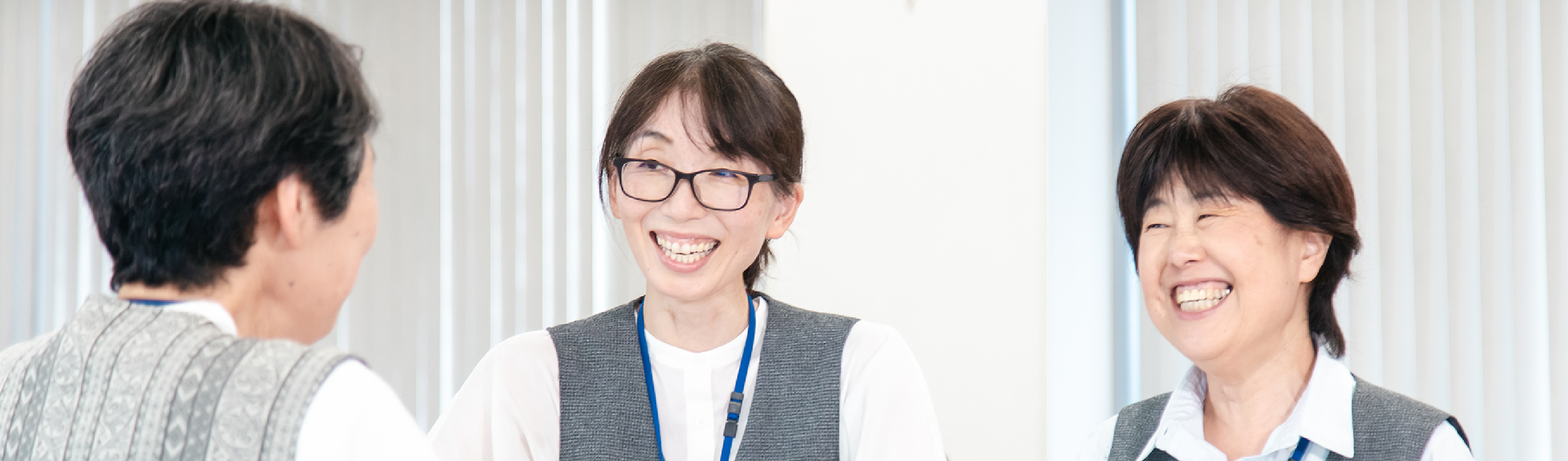 入社から時が流れ、当時1歳に満たなかった息子は社会人として自立。今は義母の介護で時短や早退、在宅勤務など、時間や働く環境を調整して仕事を継続させていただいています。このように、ライフステージの変化に応じて、仕事と家庭の両立を図りつつ、いつまでも長く働けることが当社における最大の魅力。実際に子育てや介護に取り組む仲間たちが自分らしく伸びやかに活躍していますよ。